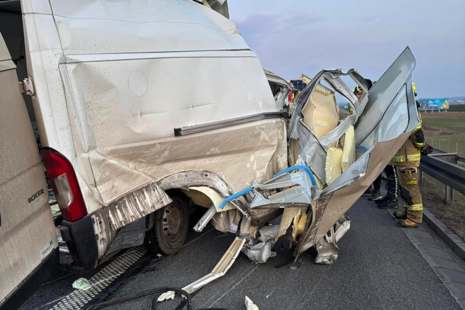 Do poważnego zdarzenia z udziałem Peugeota Boxera L4H3 oraz 40-tonowego zestawu doszło w sobotę 8 lutego około godziny 6:10 nad ranem na wysokości Kleszczewka w powiecie gdańskim (woj. pomorskie).