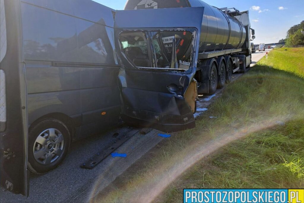 Dziś na opolskim odcinku A4 brygadówka na bazie Renault Master wbiła się w cysternę. Jadące busem 3 osoby zostały zakleszczone w kabinie.