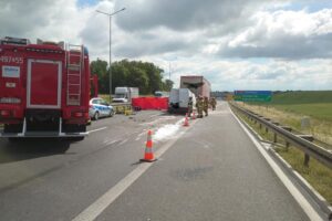 Jak informuje dyżurny Stanowiska Kierowania Komendanta Powiatowego Państwowej Straży Pożarnej w Strzelcach Opolskich, do zdarzenia doszło we wtorek 21 czerwca około godziny 8:34 pomiędzy węzłami „Krapkowice” i „Kędzierzyn-Koźle” na 272 kilometrze autostrady A4 w kierunku Katowic.