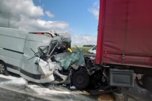Niestety, prowadzący furgon mężczyzna zmarł na miejscu wypadku, co stwierdził lekarz Lotniczego Pogotowia Ratunkowego. Z kolei kierowca ciężarówki nie wymagał pomocy medycznej.
