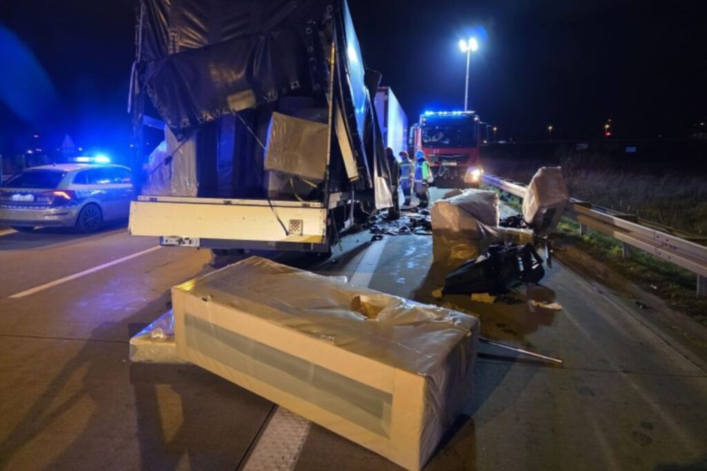 Niebezpieczne zdarzenie miało miejsce w środę 19 listopada po godzinie 17:00 pod Zgorzelcem. Zaalarmowane służby po dotarciu na 2. kilometr autostrady A4 w kierunku Niemiec potwierdziły, że doszło tam do wypadku z udziałem naczepy podpiętej do Volvo serii FH oraz Mercedesa Sprintera.