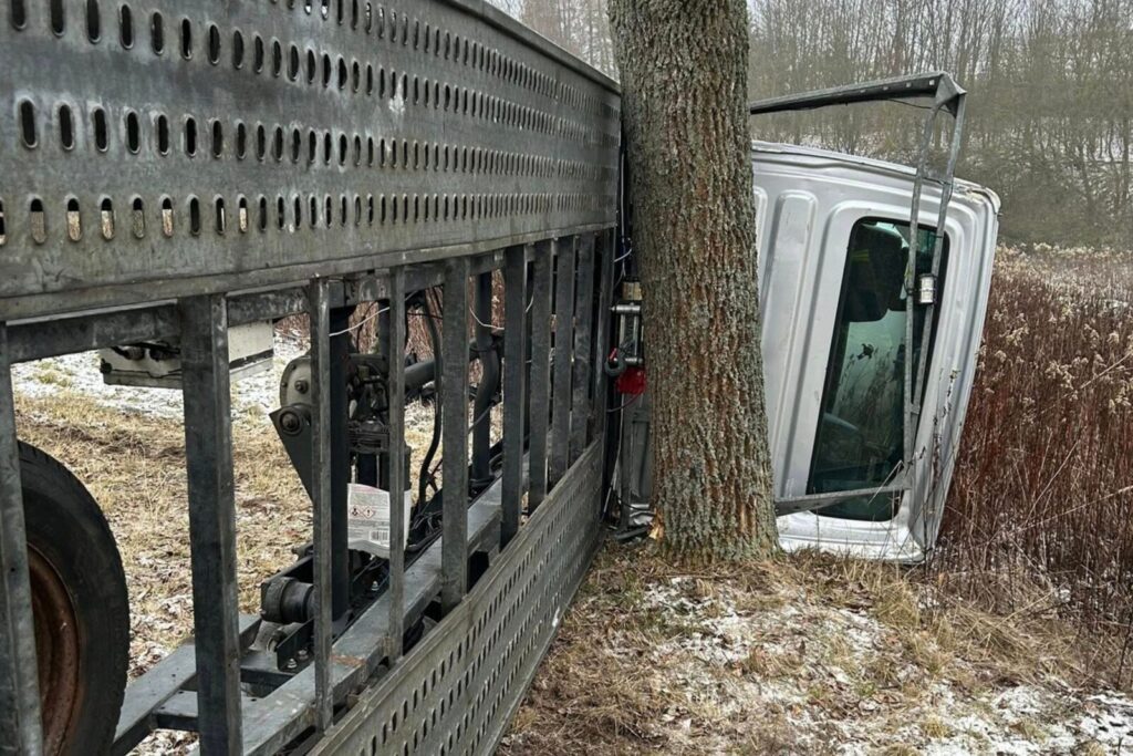 Efekt gołoledzi… Wczoraj pod Krasnymstawem autolaweta wypadła z trasy i uderzyła w drzewo. Ani kierowcy, ani pasażerowi nic się nie stało.