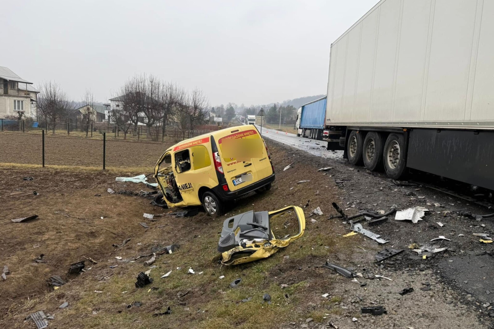 Dziś na DK 73 pod Jasłem Renault Kangoo uderzyło najpierw w jeden a potem drugi 40-tonowy zestaw. Mimo reanimacji kierowca furgonetki zmarł.