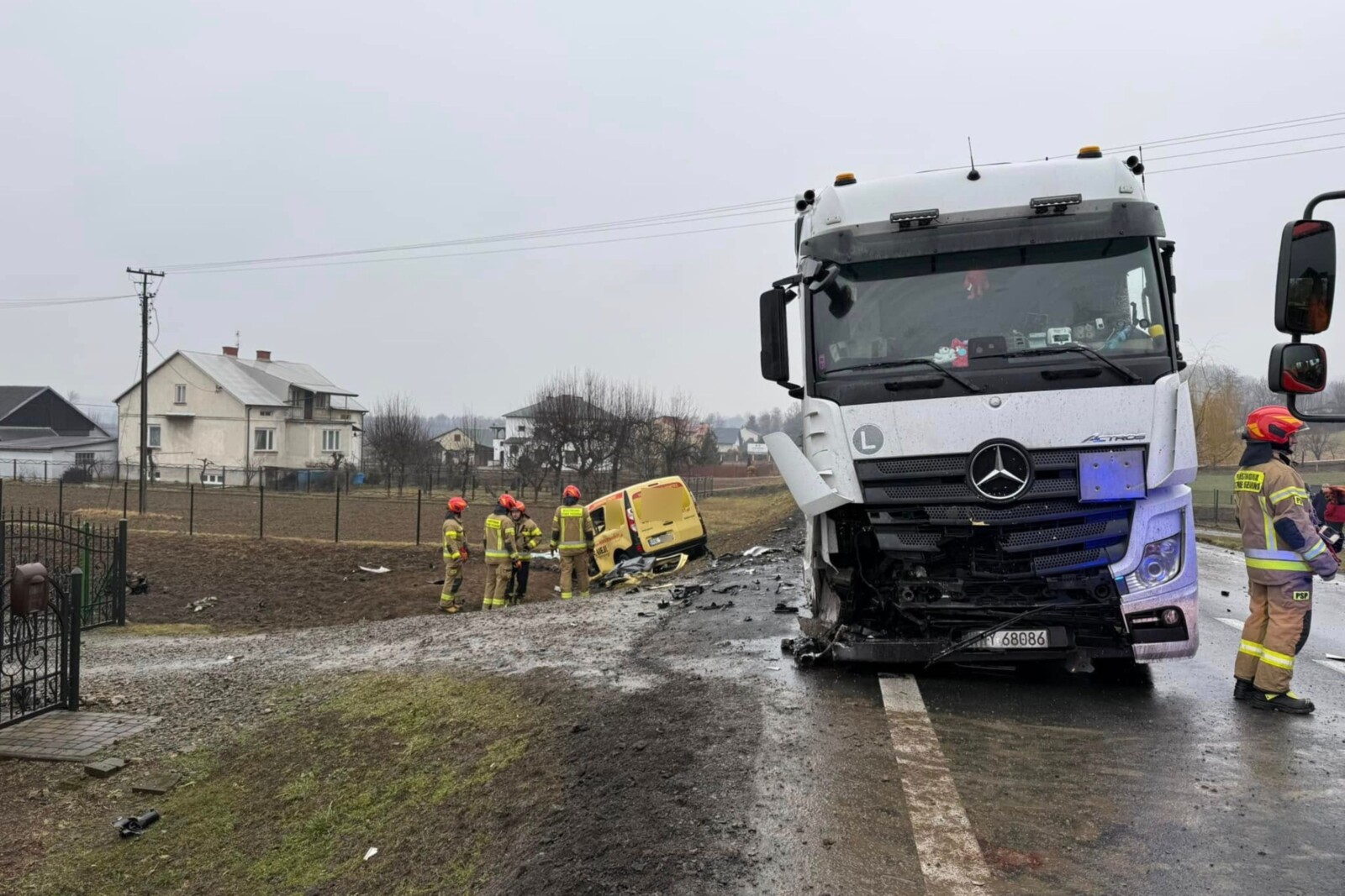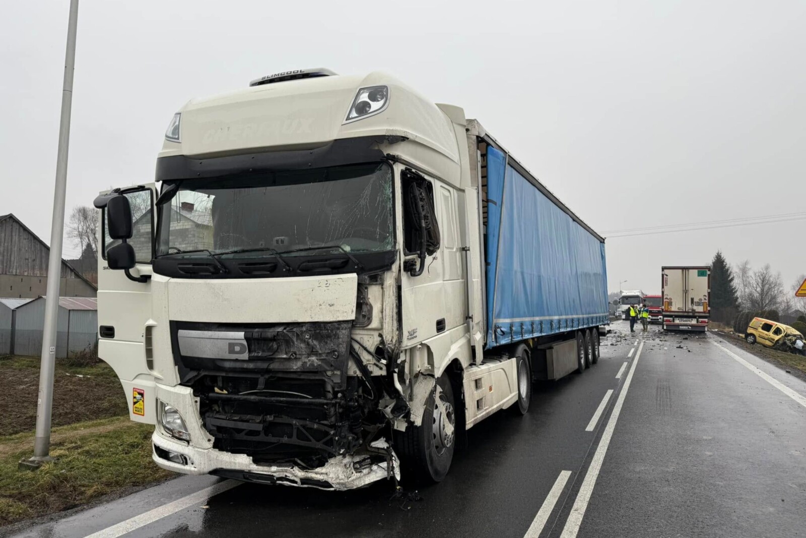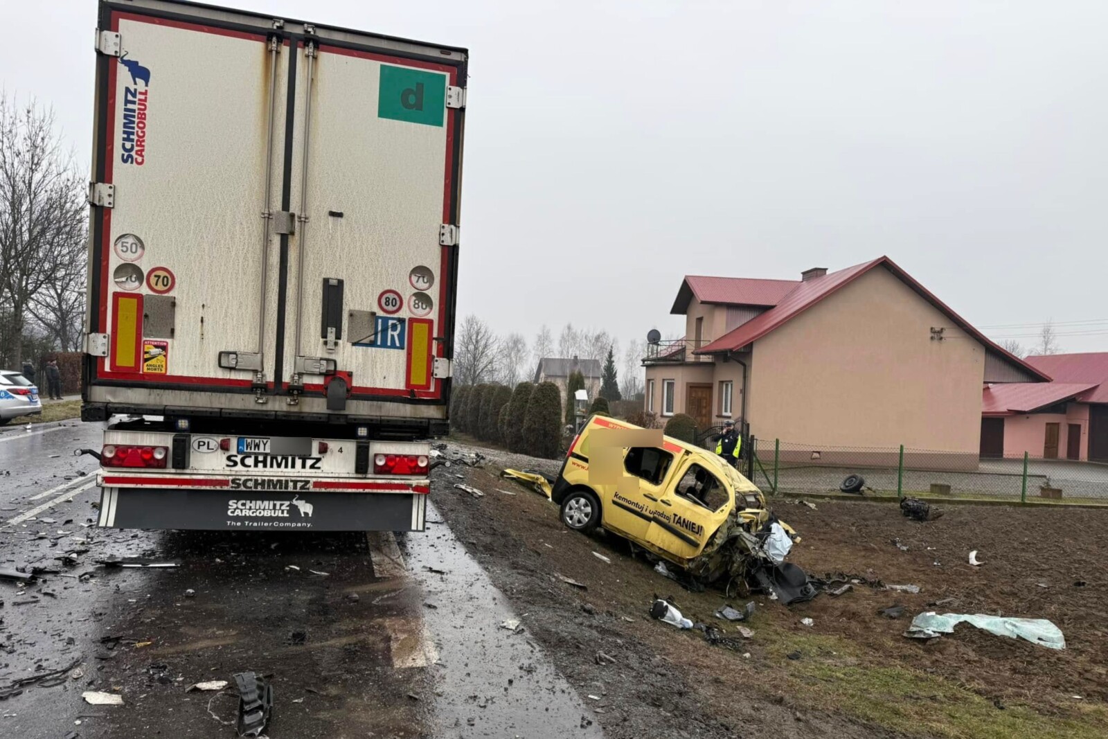 Po uderzeniu w ciągnik siodłowy żółta furgonetka została zepchnięty wprost przed drugi 40-tonowy zestaw i ostatecznie mały van wypadł z drogi do przydrożnego rowu.