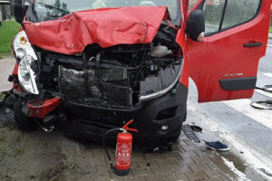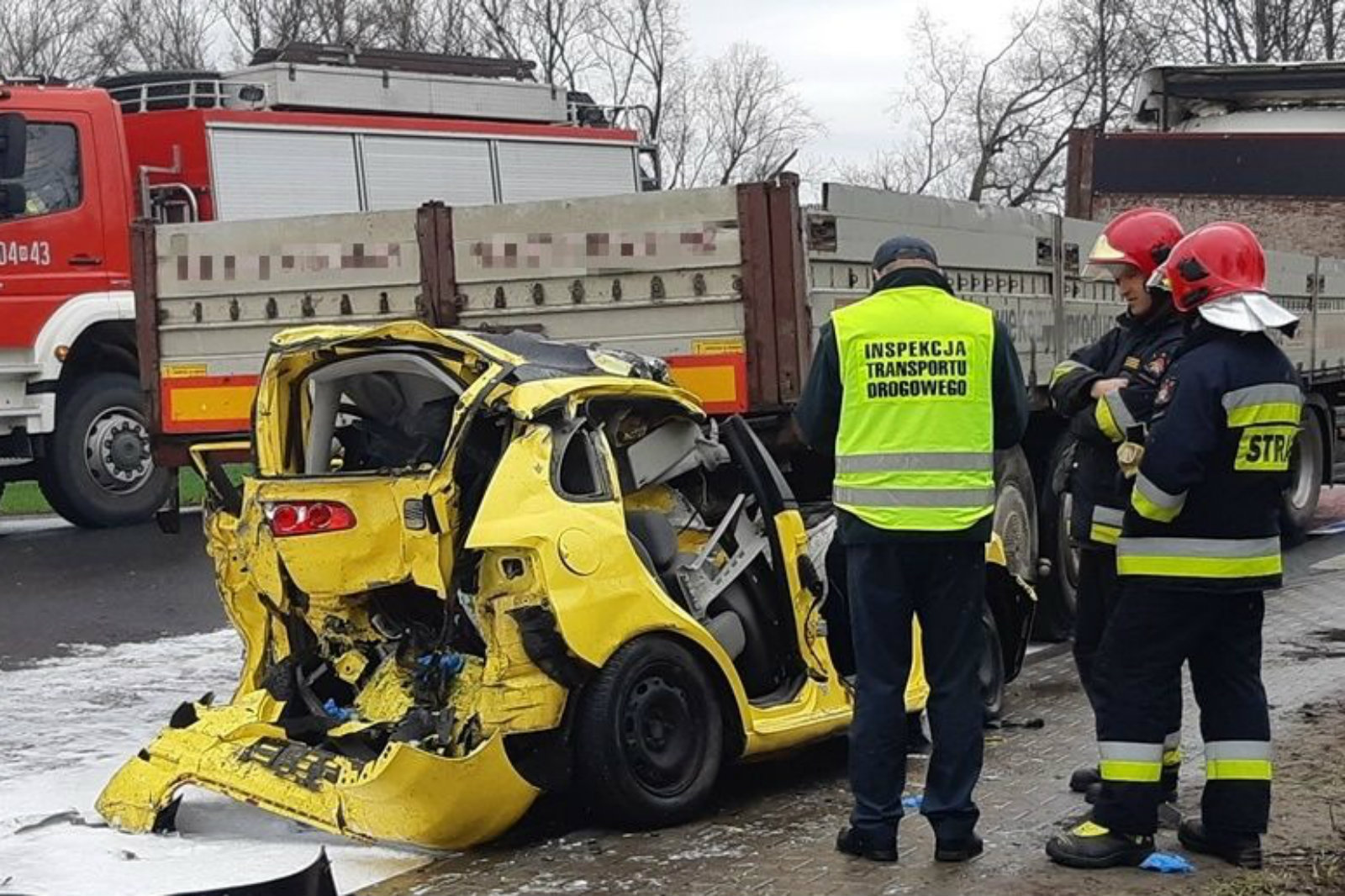 Jak ustalili policjanci, żółty Seat Ibiza uderzył w tył naczepy ciężarówki, która zatrzymała się przed przejściem dla pieszych. Chwilę po tym w tył osobówki wjechało czerwone Renault Master z zabudową na trasy międzynarodowe.