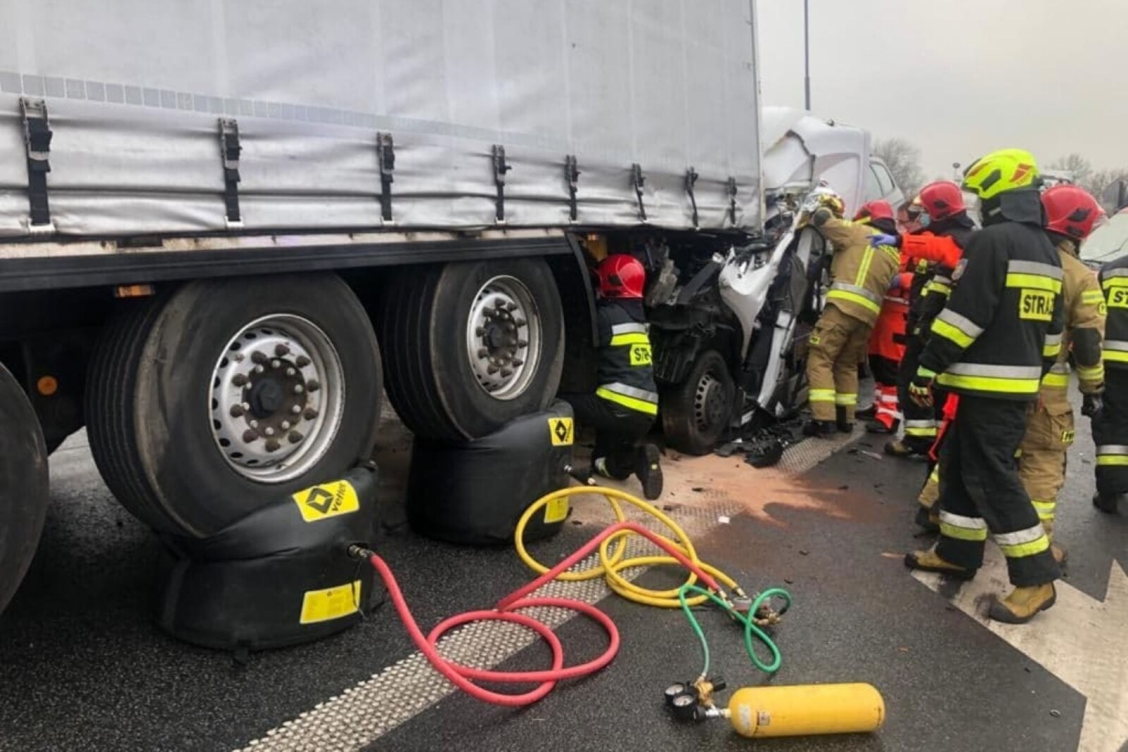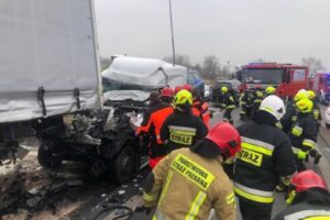 Świadkowie, jak i przybyli na miejsce zdarzenia strażacy spodziewali się najgorszego, ale prowadzący Sprintera przeżył – był nawet przytomny i miał kontakt z ratownikami.