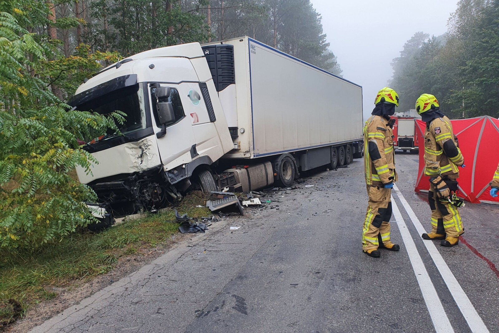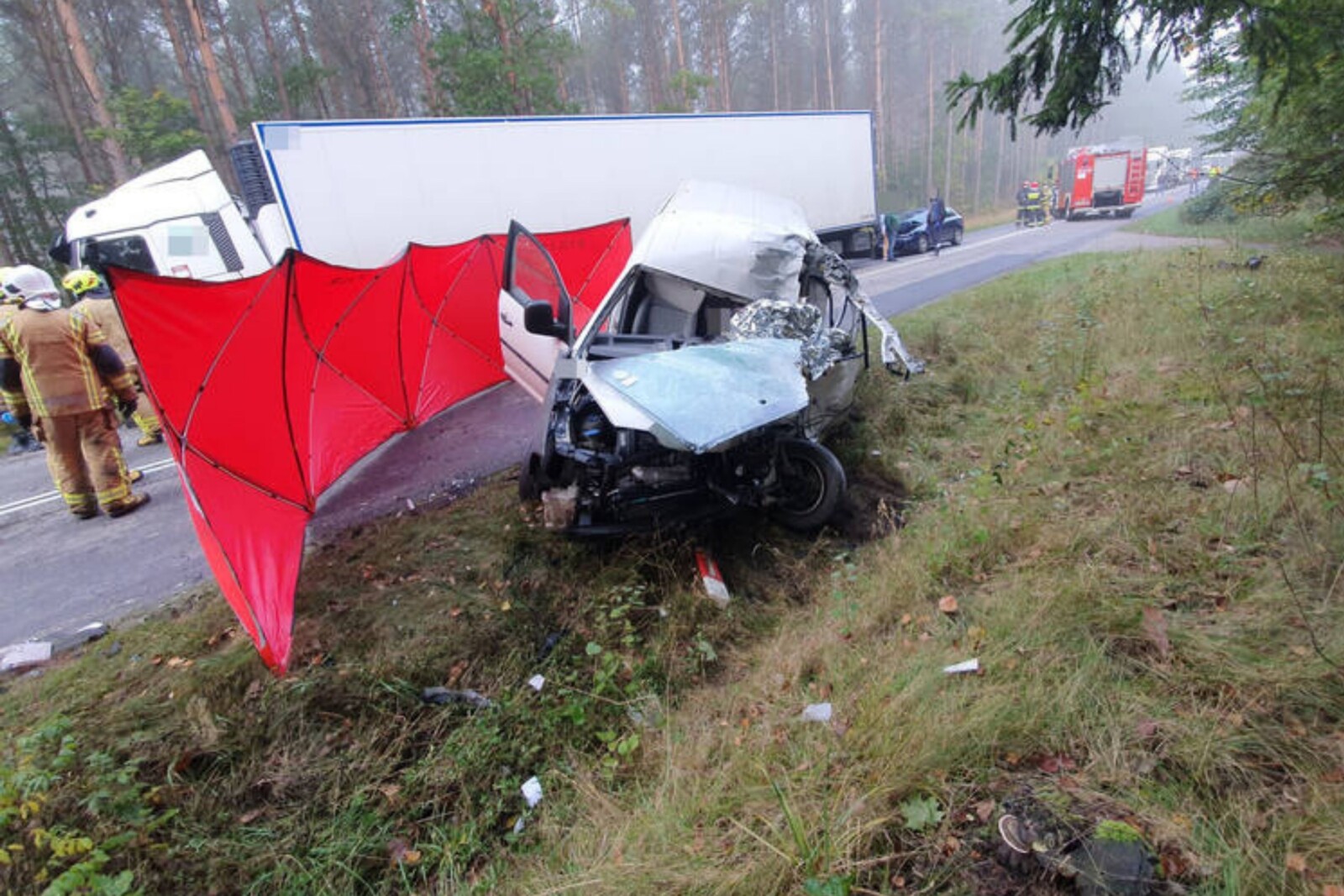 Jak na razie nie ustalono przyczyn, dlaczego jadący w stronę Bytowa biały Volkswagen Caddy zjechał na przeciwny pas ruchu, po którym jechał 40-tonowy zestaw. Potem w naczepę ciężarówki najechała jeszcze prowadząca osobowe Audi.