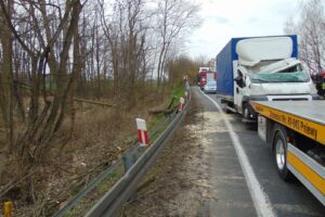 W piątek 9 marca na DK 24 na kabinę Fiata Ducato spadł konar – kierowca dostawczaka przeżył. Nie wymagał nawet hospitalizacji.
