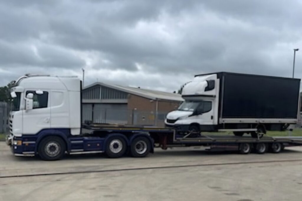 W UK się nie patyczkują. Zatrzymany bus ważył więcej niż miał DMC i na niskopodwoziowej naczepie musiał opuścił Wyspy.