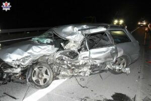 Według wstępnych ustaleń jadąca w kierunku Radomia chłodnia na podwoziu Iveco Daily zjechała na przeciwny pas ruchu i uderzyła w jadące tamtędy Audi A4.