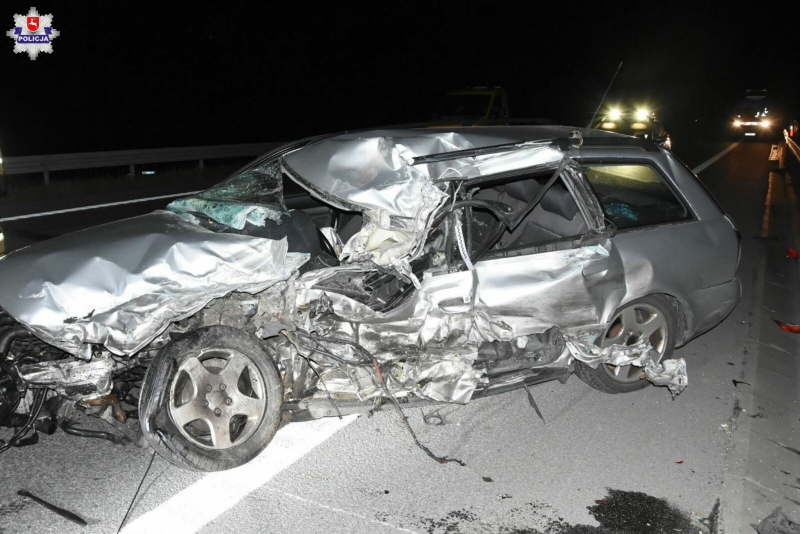 Na drodze ekspresowej S12 pod Puławami dostawcze Iveco Daily wjechało w Audi. Na miejscu zmarł kierowca osobówki.