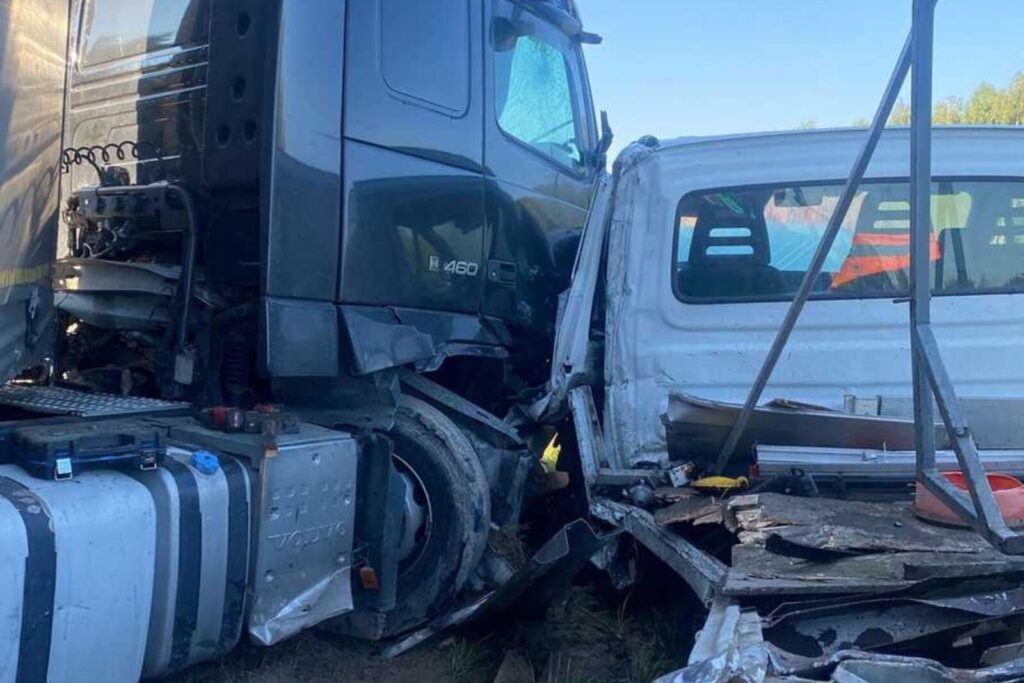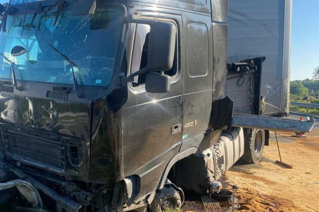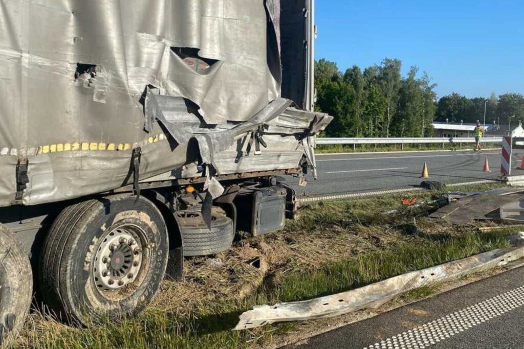 Tego samego dnia, w podobnych okolicznościach doszło do zdarzenia na autostradzie A1. Około 9:40 na 344. kilometrze w kierunku Łodzi w Forda Transita służby drogowej, który zabezpieczał stojący na pasie awaryjnym 40-tonowy zestaw składający się z „Magnumki” i naczepy (rzućcie okiem na wideo poniżej).