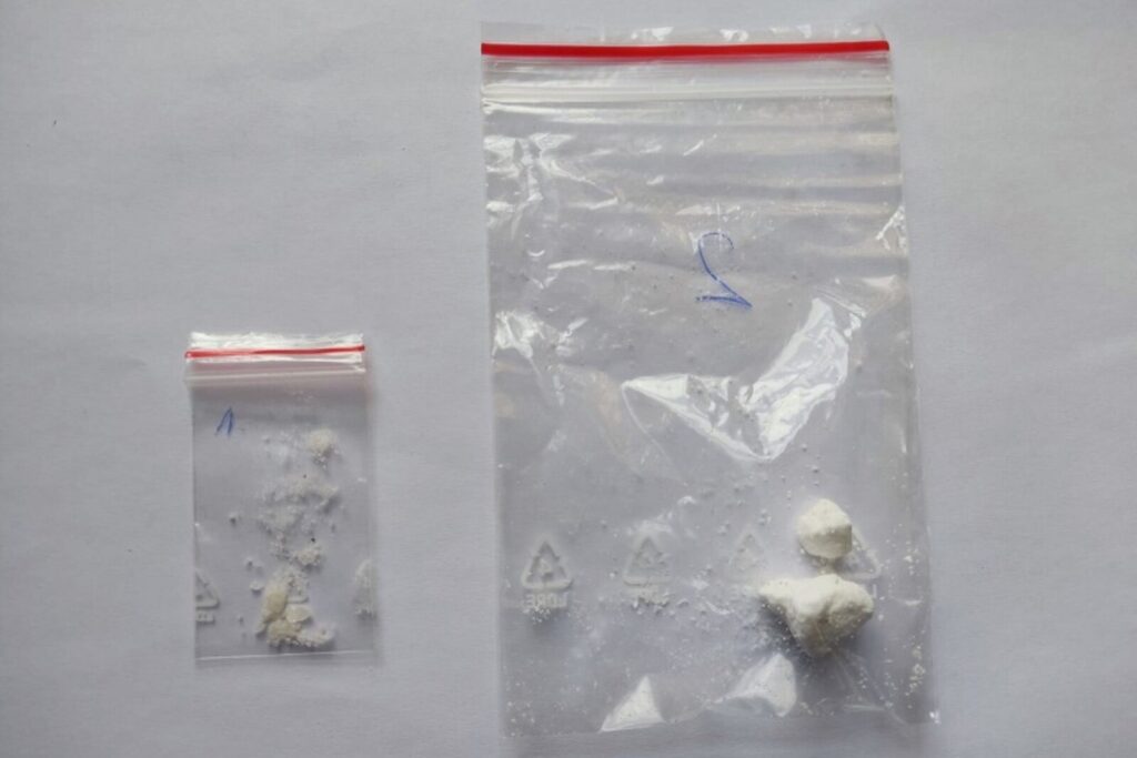 Funkcjonariusze „drogówki” przy kierującym znaleźli też zawiniątko z białymi kryształkami, które mężczyzna próbował ukryć. Potem, podczas przeszukania pojazdu, przy podsufitce znaleziono też woreczek strunowy z białym proszkiem.