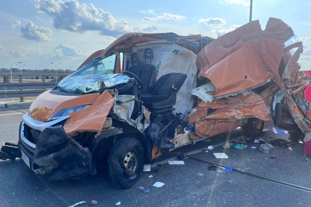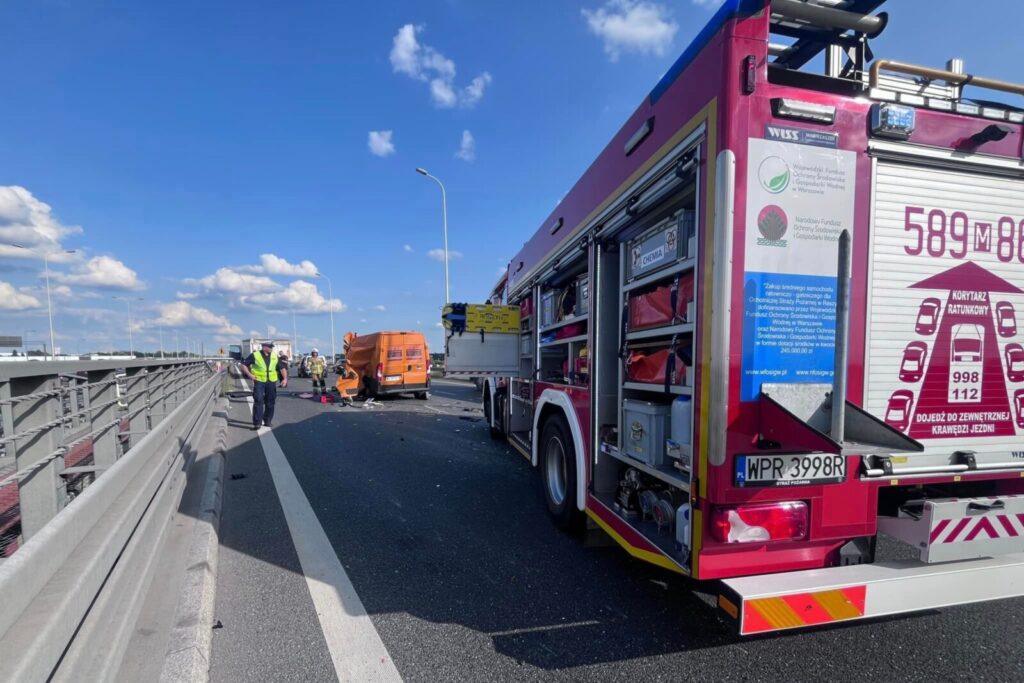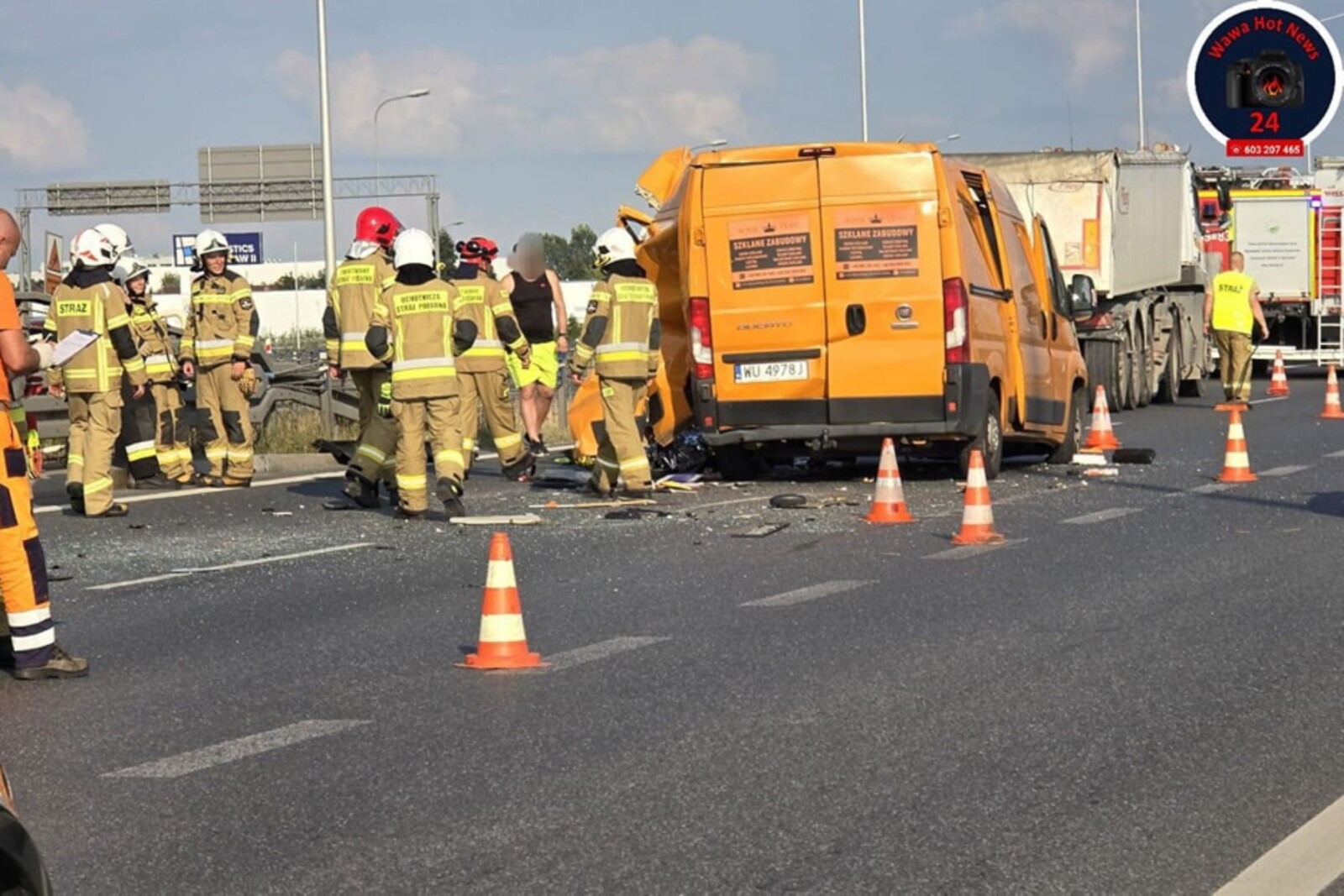 Na warszawskim odcinku S2 Fiat Ducato najechał na tył 40-tonowego zestawu. Zakleszczonego w kabinie busa mężczyznę musieli uwalniać strażacy.