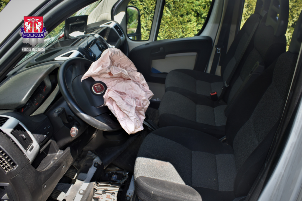 Kierujący dostawczym autem doznał niegroźnych obrażeń twarzy, ale nie to było przyczyną tego, że sam nie mógł wyjść z kabiny Ducato.