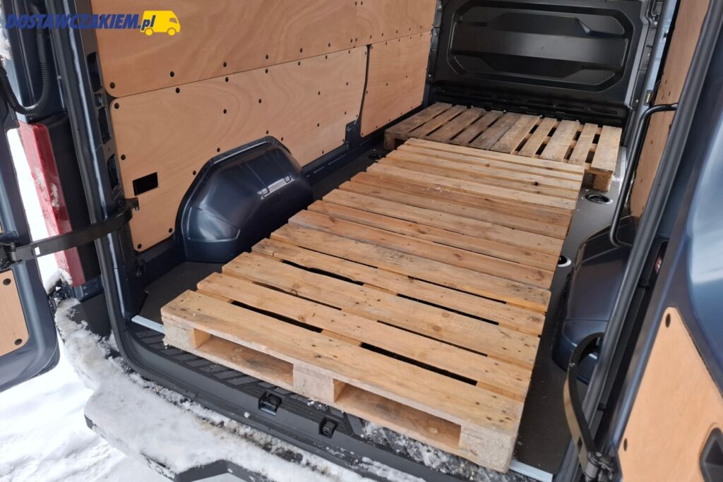Po podłodze paka L3H2 ma długość maksymalnie 3857 mm, natomiast na wysokości 1,1 m już nieco mniej, bo 3634 mm. Wynika to z tego, że ściana grodziowa w dolnej części wchodzi delikatnie w stronę kabiny pasażerskiej.