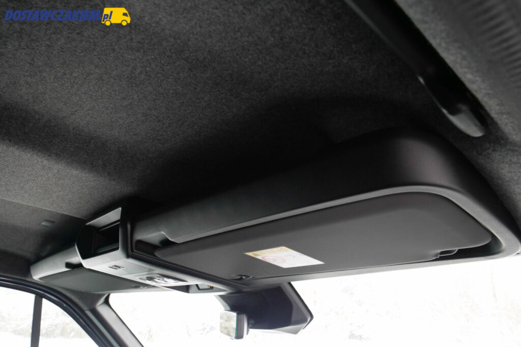 Oczywiście i we wnętrzu znajdziemy kilka bardzo praktycznych półek i schowków, gdzie będziemy mogli upchać m.in. kamizelki odblaskowe, „gabarytki”, zapasowe pasy transportowe, zestaw kątowników zabezpieczających pasy i wiele, wiele innych potrzebnych kierowcy dostawczaka akcesoriów.