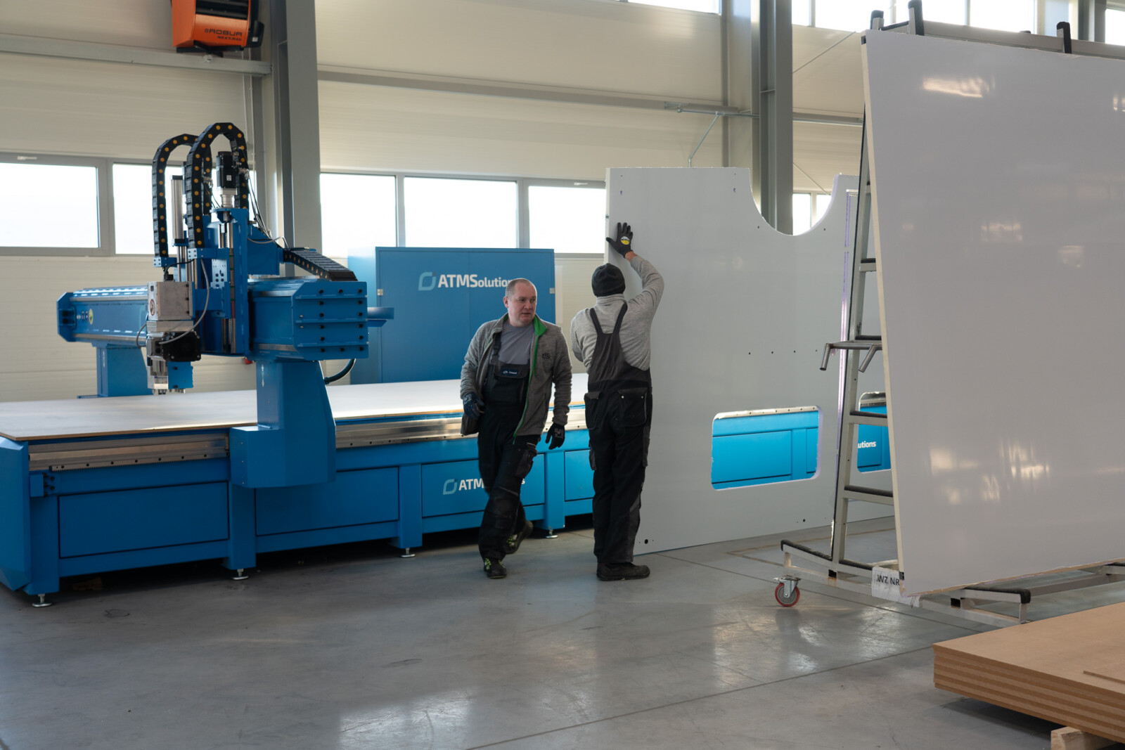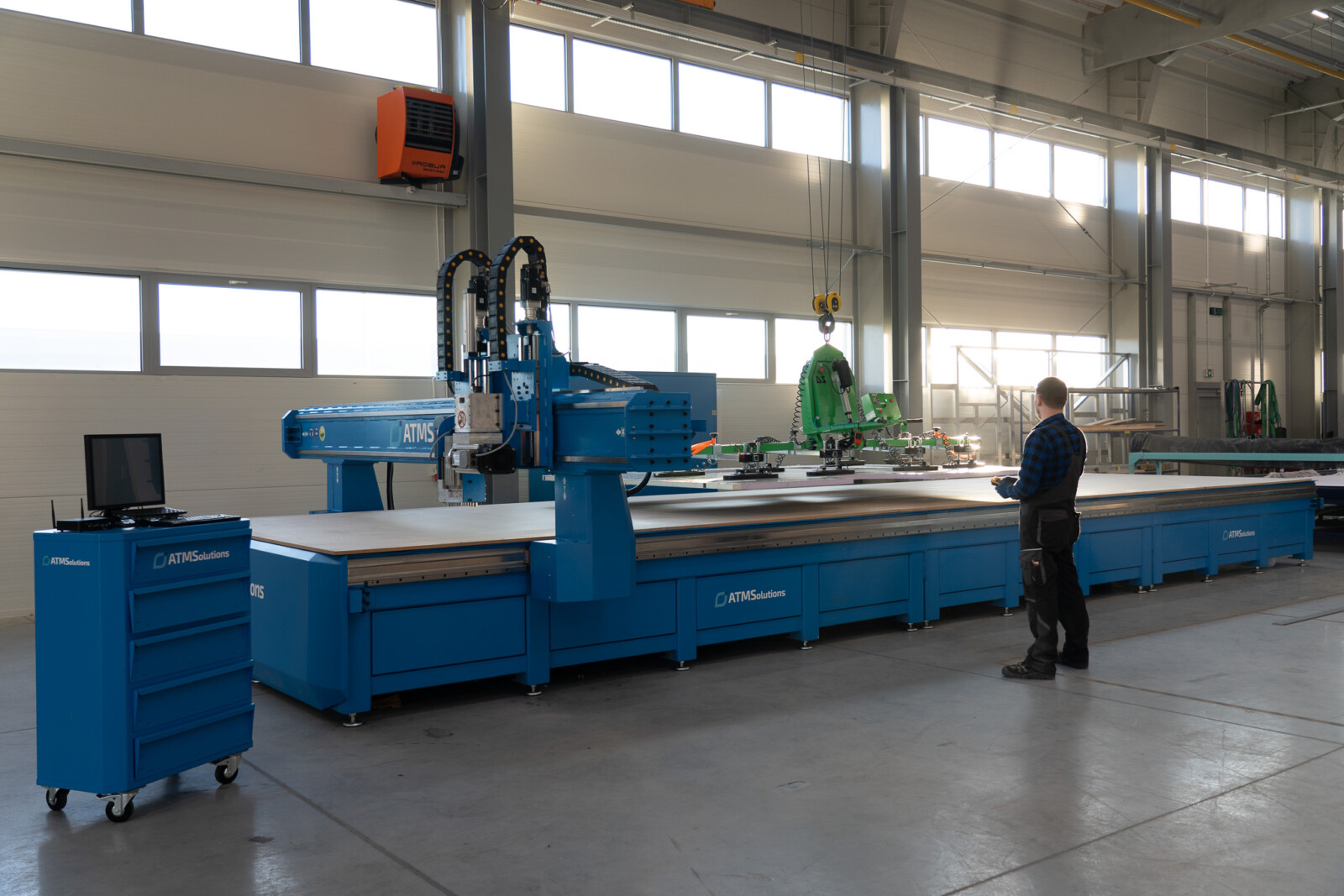 Tradycyjne piły do wycinania sklejki ustąpiły miejsca nowoczesnemu centrum obróbczemu sterowanemu numerycznie CNC (3-osiowemu), które integruje się z zaawansowanym systemem zarządzania produkcją klasy ERP. To przełomowe połączenie umożliwiło obrabianie płyt kompozytowych w pełnym cyklu automatycznym od momentu zaprojektowania produktu do momentu produkcji wyrobu gotowego.