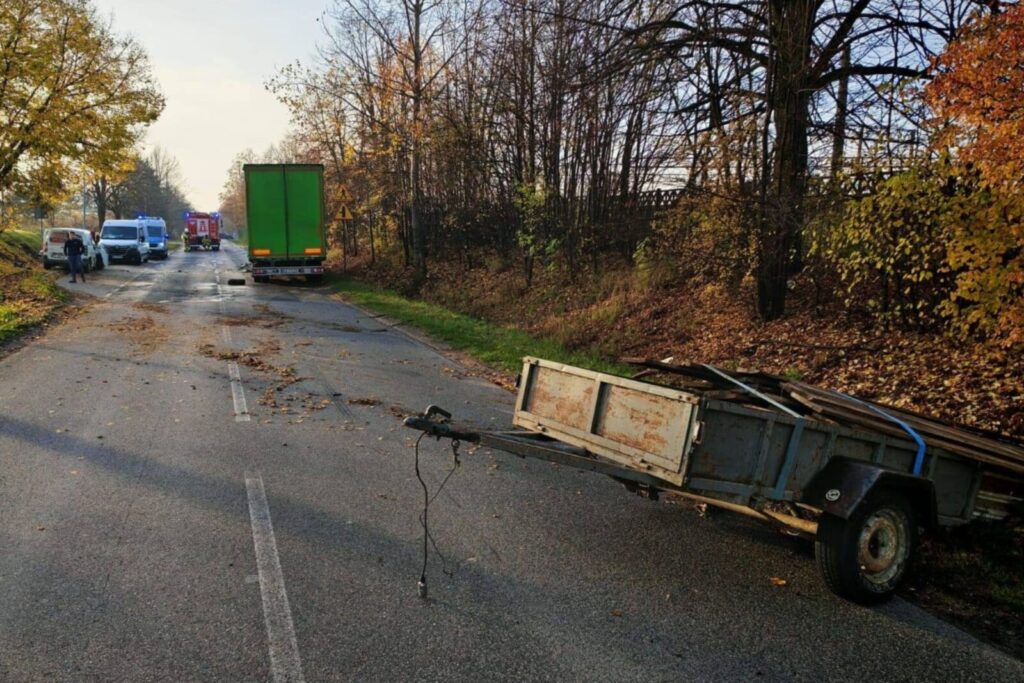 Warto przy okazji tego wypadku zaapelować, aby użytkownicy tzw. przyczep lekkich (do 750 kg DMC) regularnie dbali o ich kondycję pomimo braku przeprowadzania corocznie obowiązkowych badań technicznych. Przyczepy lekkie (homologacja O1) nie są objęte prawnie takim wymogiem, ale – jak widać – czasem warto rzucić okiem na to, czy np. są dokręcone chociażby śruby do kół.