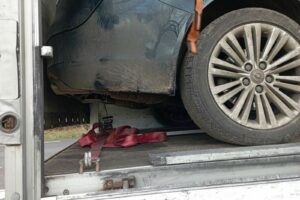 Po sprawdzeniu ładunku i zabezpieczenia „Krokodyle” stwierdzili, że przyciężkie kombi przewożono bez spięcia auta pasami. Za jedyne zabezpieczenie służył hamulec postojowy, zwany potocznie „ręcznym”.