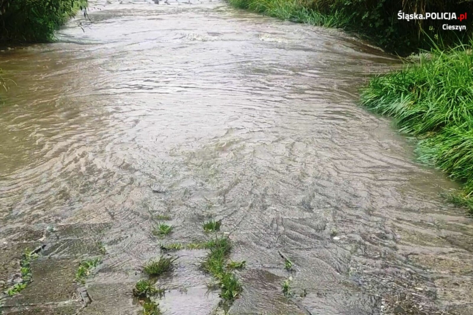 W Godziszowie pod Cieszynem Opel Movano utknął w potoku podczas silnych opadów. Nurt porwał jednego z pasażerów, niestety nie przeżył.