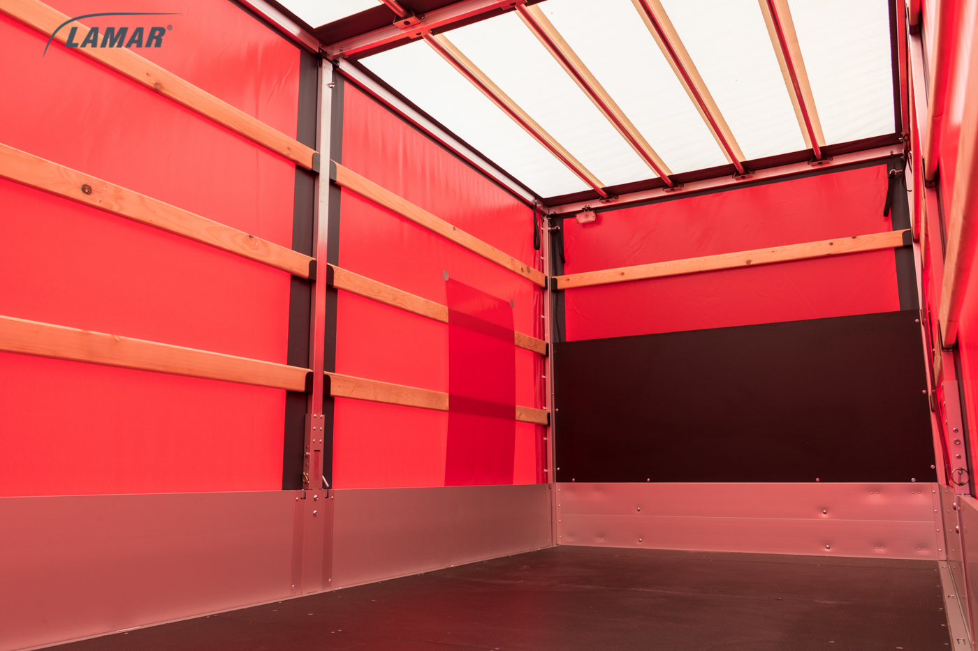 Przeźroczysta matowa plandeka na dachu gwarantuje dobrą widoczność na całej długości paki. Jedynie w przedniej części skrzyni zamontowano lampkę.
