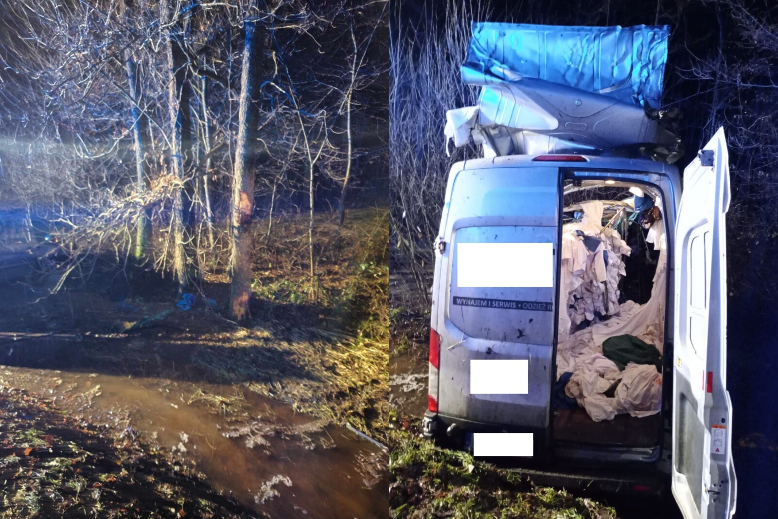 W miejscowości Smyków nieopodal Dąbrowy Tarnowskiej (woj. małopolskie) jadący dostawczym Fordem Transitem mężczyzna na łuku stracił panowanie nad pojazdem i po zjechaniu z drogi uderzył górną częścią pojazdu w drzewa i zatrzymał się w chaszczach na podmokłym terenie.