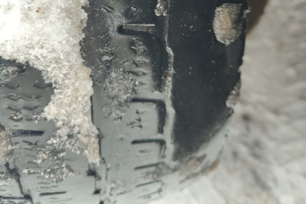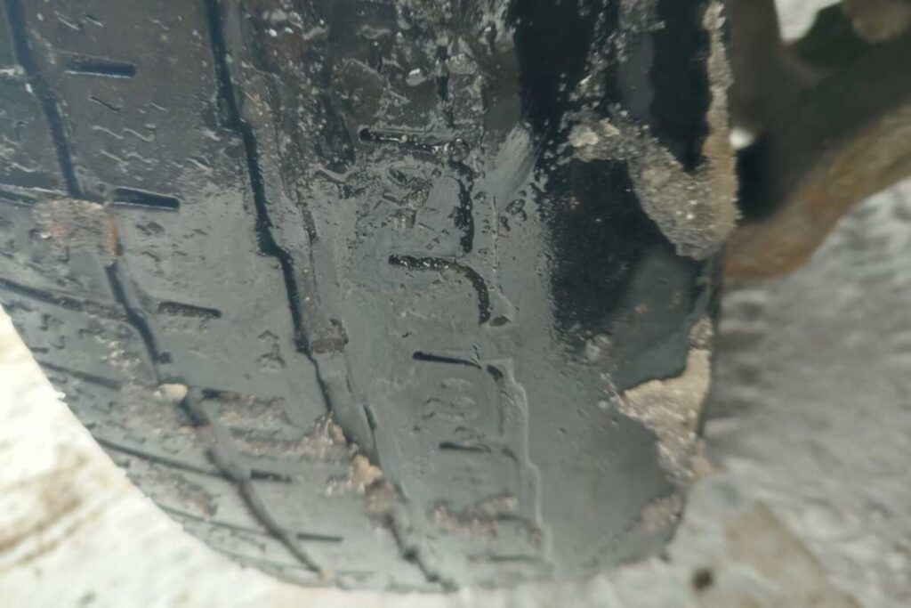 W trakcie weryfikacji stanu technicznego Isuzu okazało się, że opony na przednich kołach są już niemal całkowicie pozbawione bieżnika.