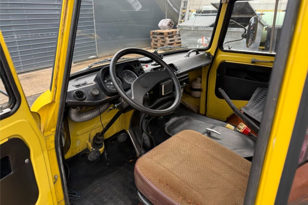 Ładnie zachowane wnętrze Barkasa z końca produkcji oraz widoczny pomiędzy fotelami tunel silnika. Pytanie czy skrywa 2-suwową 3-cylindrową jednostkę czy już 4-cylindrowy i 4-suwowy silnik Volkswagena.
