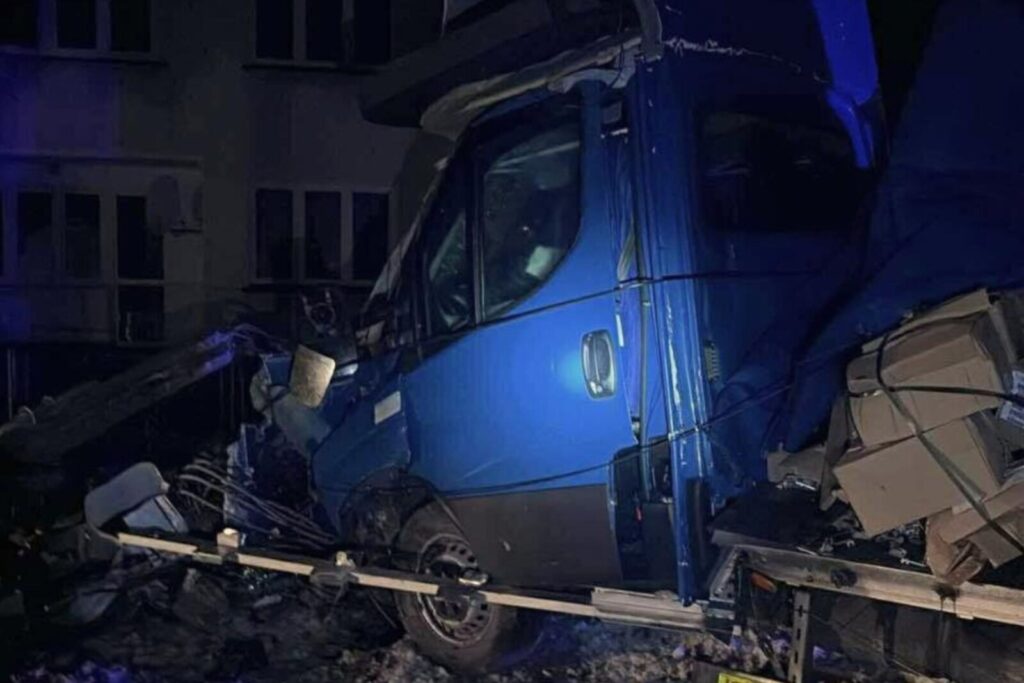 Pierzyna z „kurnika” na wierzchu – bus skosił słup energetyczny