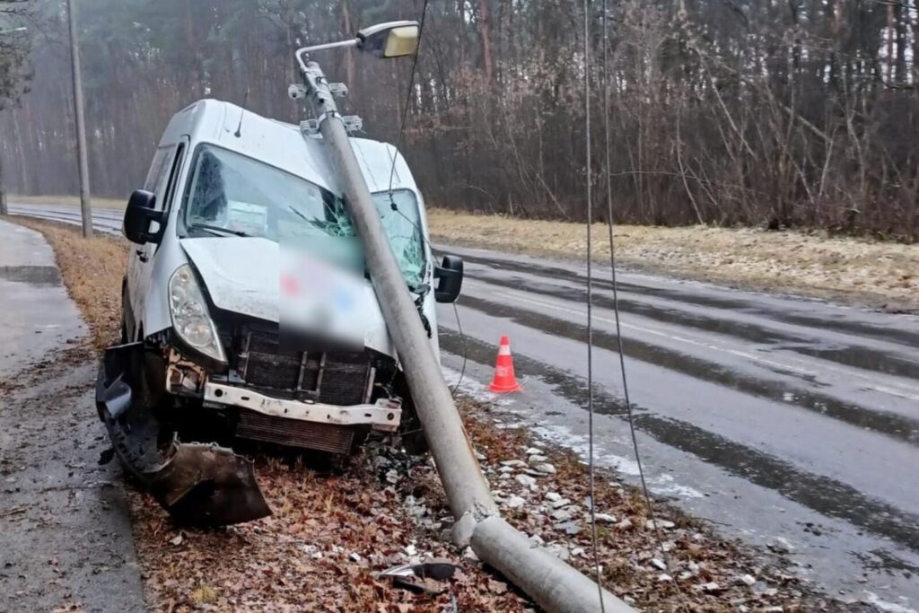 W wyniku tego furgon uderzył w słup latarni, który przewrócił się na „blaszkę”. Szczęśliwie 38-letniemu kierowcy Masterki nic się nie stało.