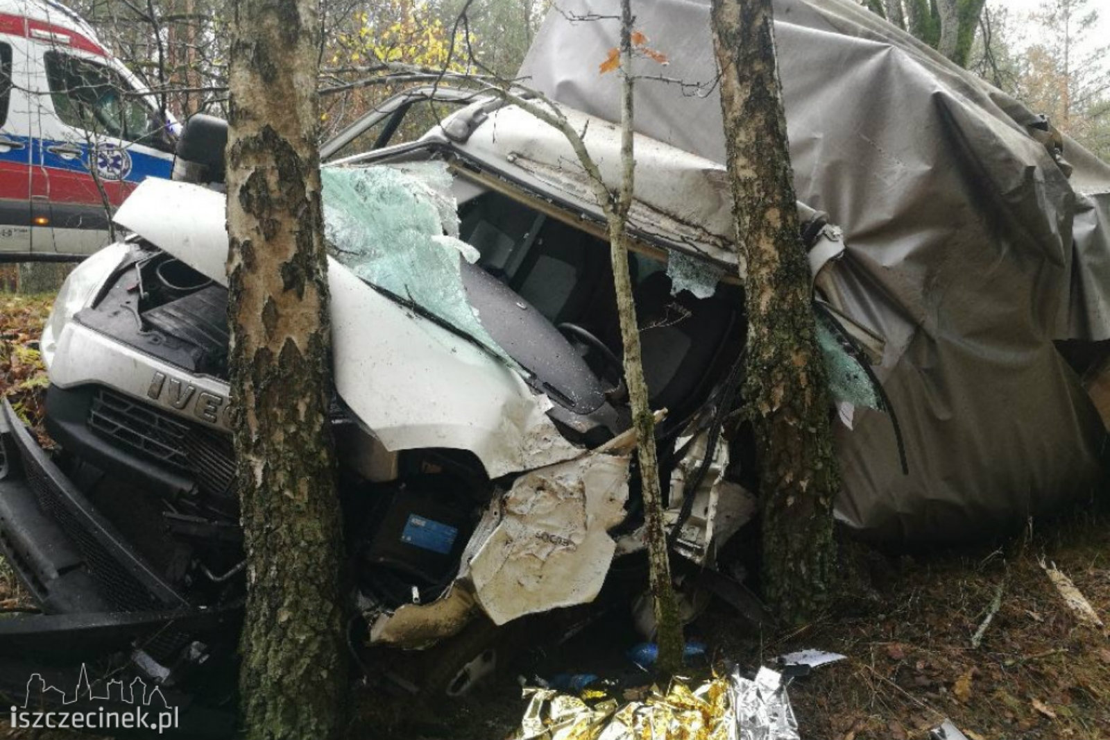 W środę 13 listopada pod Szczecinkiem na drodze wojewódzkiej nr 171 Iveco Daily wjechało w drzewa – w busie były 2 osoby, ale nie odniosły groźnych obrażeń.