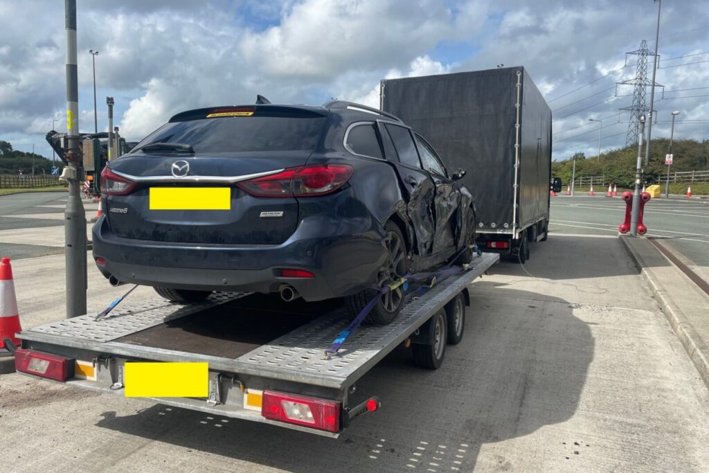 Wśród poddanych kontroli pojazdów znalazł się zestaw na kategorię prawa jazdy B+E składające się z zarejestrowanego w Polsce Iveco Daily 35S z zabudową typu „międzynarodówka” z podpiętą lawetą, na której przewożono uszkodzoną Mazdę 6. Z kolei pod plandeką busa transportowany była kolejna osobówka w postaci DS 3.