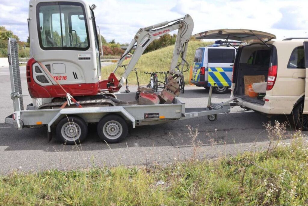 Czeska policja zatrzymała budyniowe W639 ciągnące na skradzionej przyczepie skradzioną koparkę. Polskie małżeństwo wracało z jumy w Austrii.
