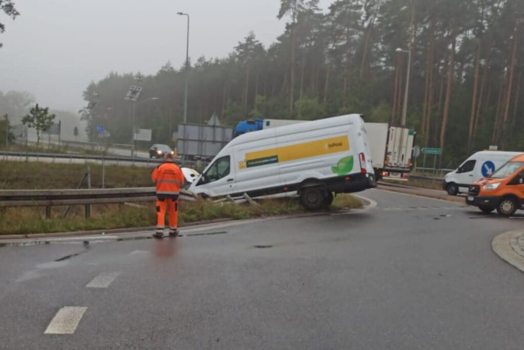 Jak podaje żyrardowska policja na wysokości miejscowości Krzyżówka kierująca elektrycznym furgonem 34-latka wypadła z ronda uderzając w barierki ochronne.