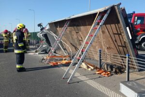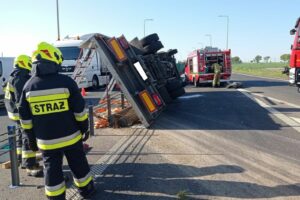 Zbyt duża prędkość i źle zabezpieczony ładunek był przyczyną wywrócenia się Iveco Daily na drodze ekspresowej S11.