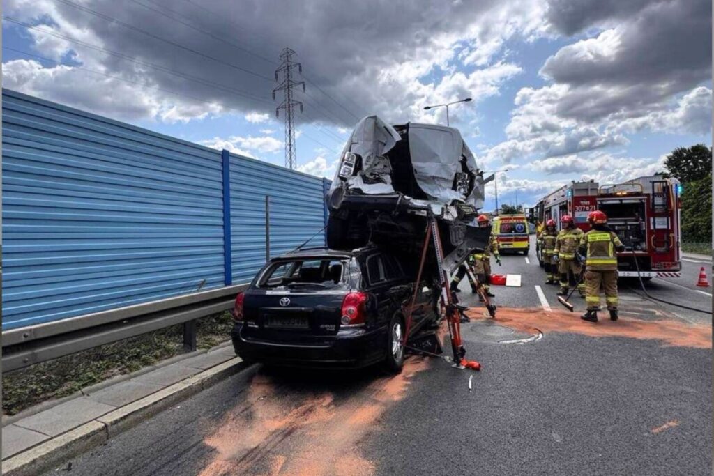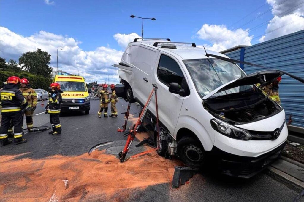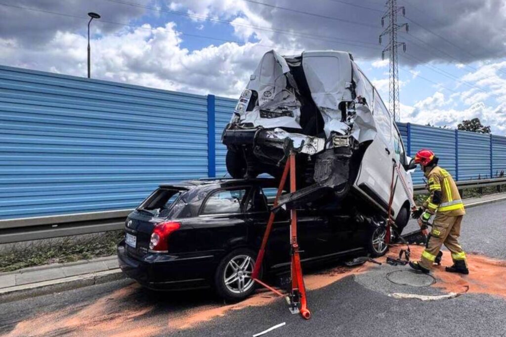 W wyniku uderzenia w vana znalazł się on niemal całkowicie na dachu osobowej Toyoty. Do szpitala na badania przewieziono kierowcę kombi i dostawczej Toyoty Proace.
