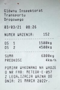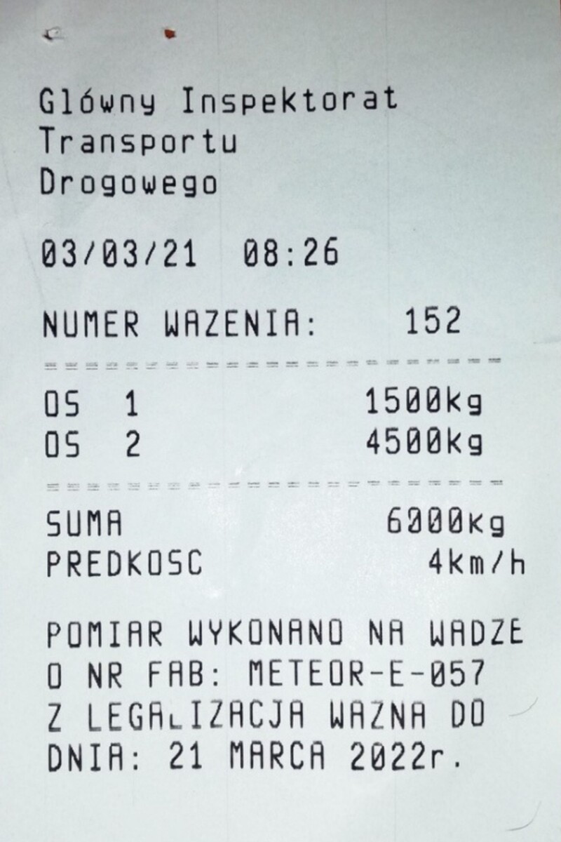Zarejestrowany na 3500 kg DMC dostawczak ważył w rzeczywistości 6000 kg – tylko na tylnej osi spoczywała masa 4500 kg.