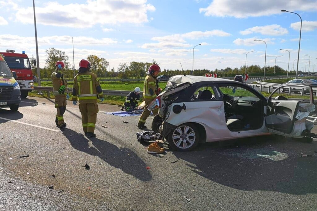 Groźne zdarzenie na drodze ekspresowej S5 z udziałem osobowego Audi A1 oraz dostawczego Forda Transita.