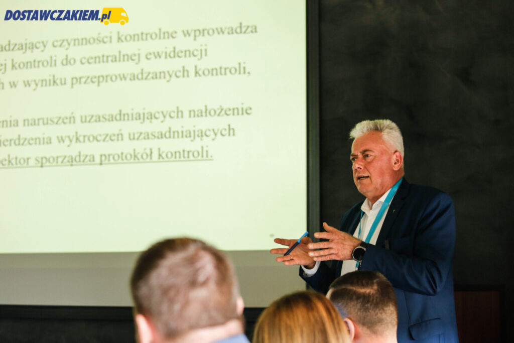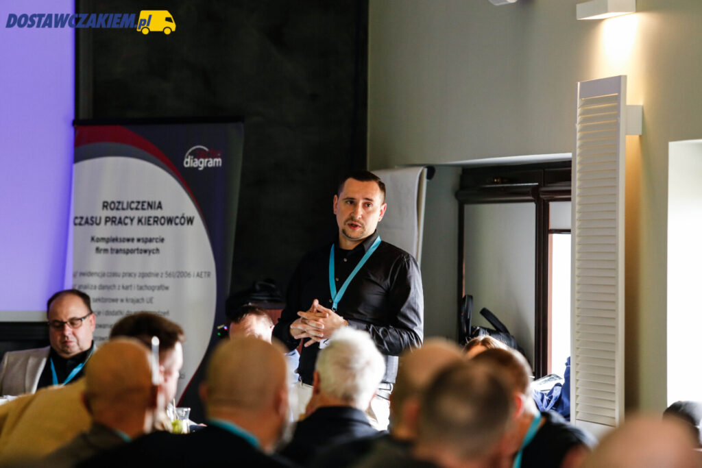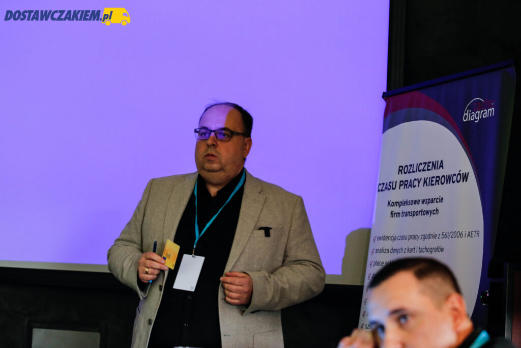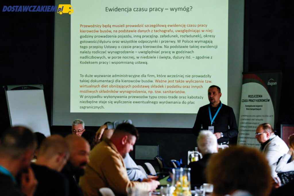 Następnie prelekcję poprowadzili przedstawiciele firm EURO-TACH i TACHO-DIAGRAM, którzy zaprezentowali rozwiązania umożliwiające m.in. zdalną możliwość sczytywania danych z urządzenia zamontowanego w pojeździe, aby zachować terminowość odczytów zgodnie z przepisami.