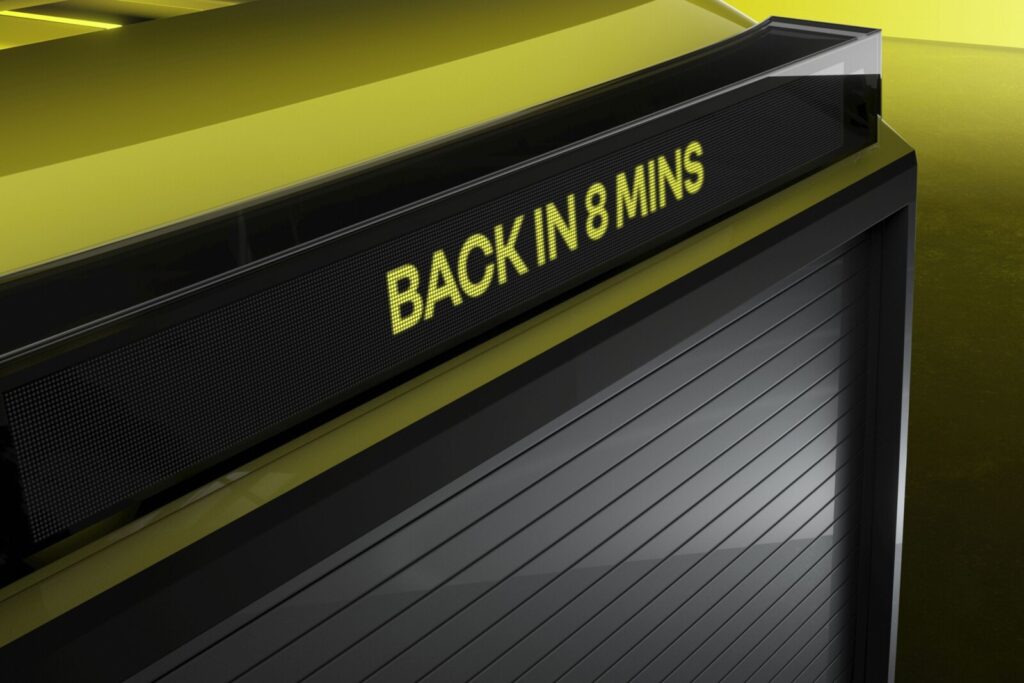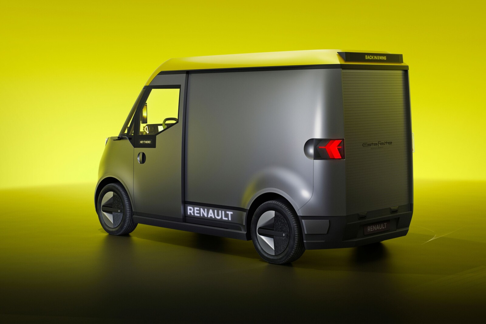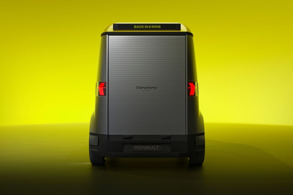 Warto zauważyć, że Estafette Concept wyposażono w kilka interesujących rozwiązań, w tym w cztery wyświetlacze (z przodu, po bokach oraz z tyłu), gdzie wyświetlana może być informacja o tym, że kierowca wróci za 8 minut.