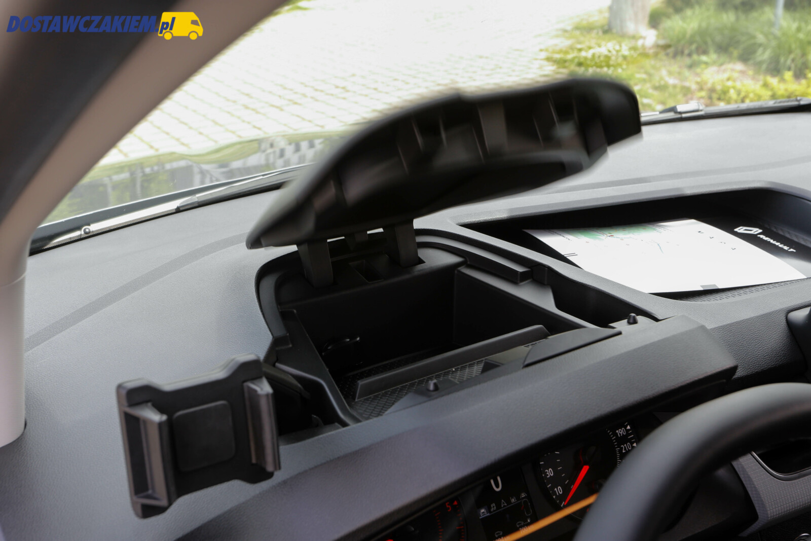 Projekt nowej deski rozdzielczej Kangoo III sprawia pozytywne wrażenie. Do tego ponad 60 litrów łącznej pojemności schowków na pewno przyda się w firmowym aucie.