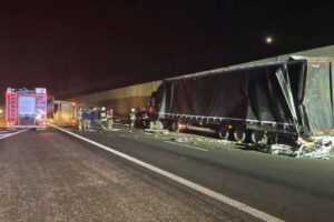 Na drodze ekspresowej S5 na wysokości Łabiszynka, za węzłem Gniezno Północ, doszło do kolizji z udziałem ciągnika siodłowego, busa i dwóch pojazdów osobowych.