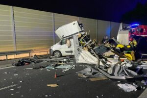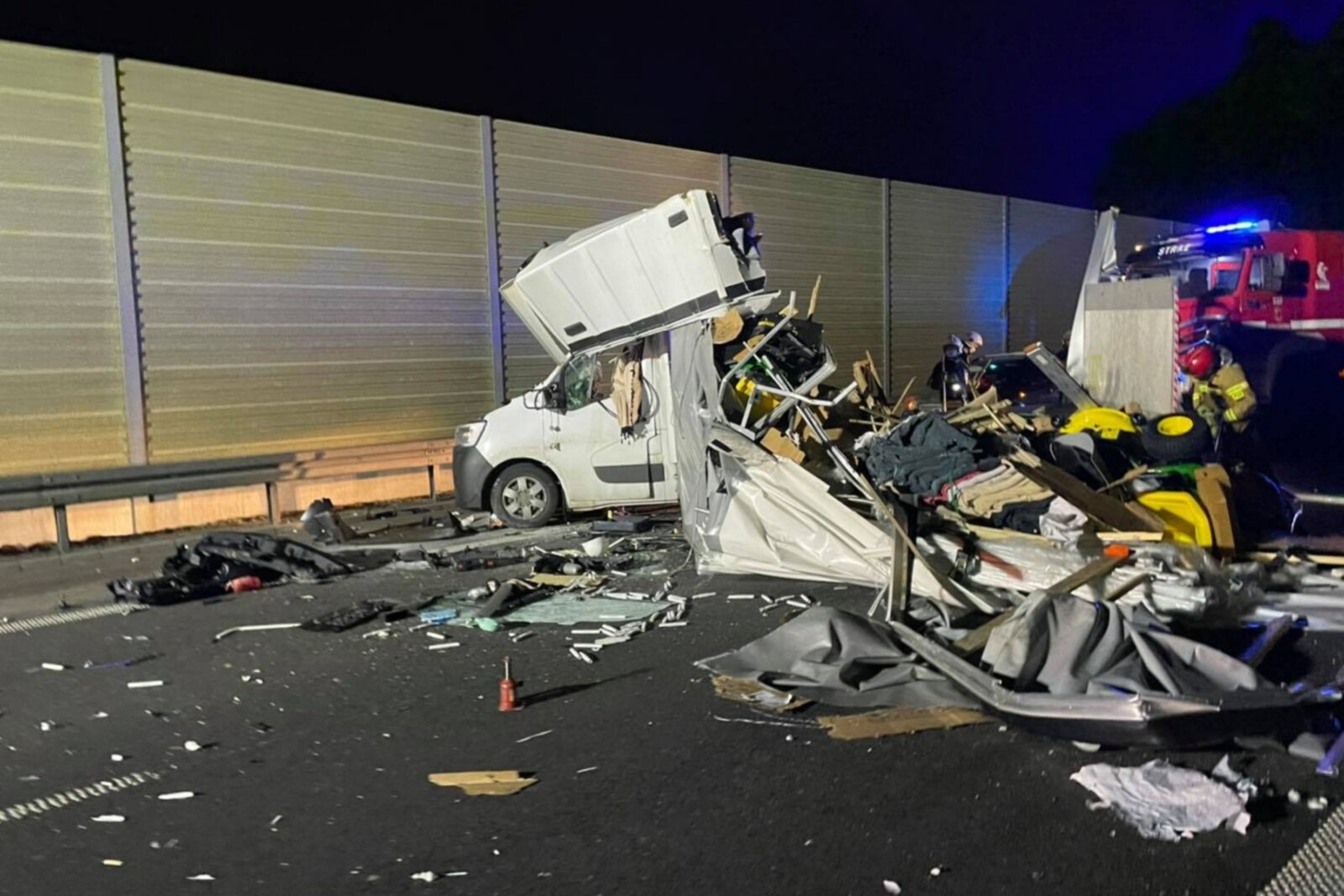 Kierowca busa może mówić o sporym szczęściu! Przewożące traktorki Renault Master niemal rozerwane na strzępy na S5 – nikt nie został ranny.