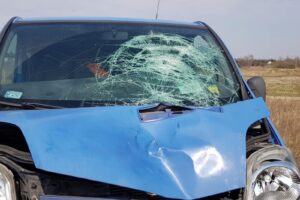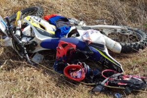 W przejeżdżające tamtędy Renault Trafic X83 uderzył przelatujący nad drogą motocrossowy motocykl.