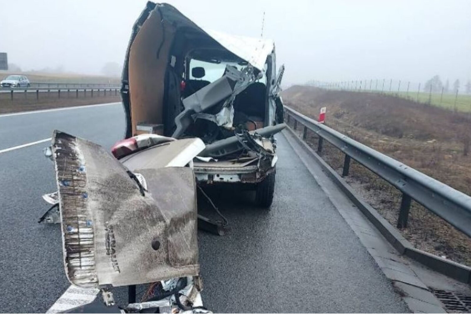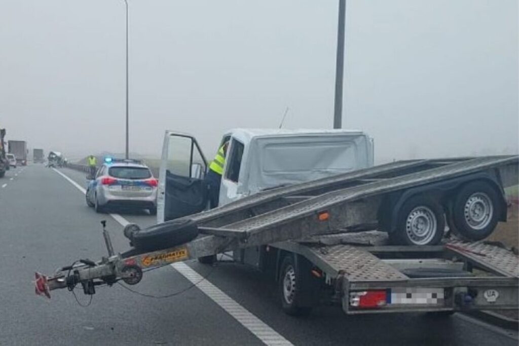 Około godziny 9:40 rano w stojącego na pasie awaryjnym ukraińskiego Mercedesa Sprintera uderzył kierowca dostawczego Renault Master.
