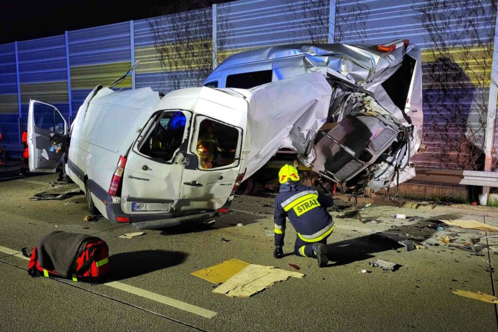Wczoraj doszło do groźnego zdarzenia pod Wieruszowem. Niemal cały prawy bok Sprintera został oderwany po uderzeniu w pojazdy pomocy drogowej.