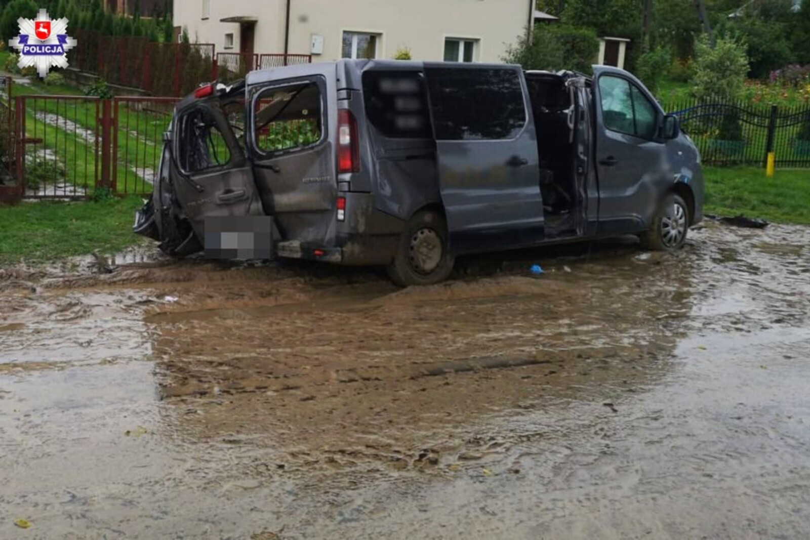 Jak wynika z policyjnych ustaleń kierujący Renault Trafic najprawdopodobniej wpadł w poślizg na mokrej drodze, przez co bus zaczął zjeżdżać na przeciwległy pas ruchu.