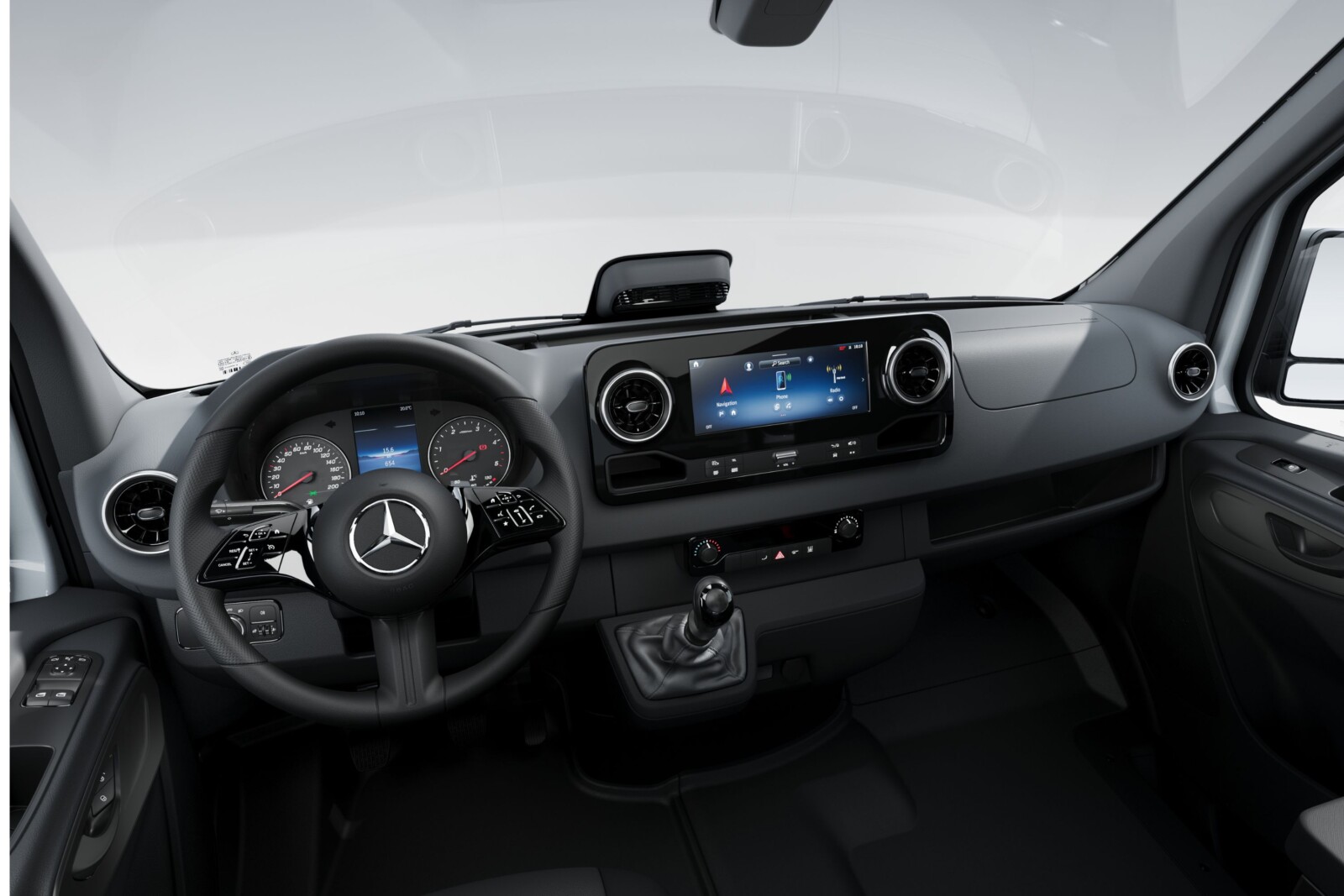 W bazowej wersji Sprinter i eSprinter oferują, poza wspomnianym już systemem MBUX, kamerę cofania, wielofunkcyjną kierownicę, czujnik deszczu czy asystenta reflektorów a także aktywnego asystenta utrzymania pasa ruchu, inteligentnego asystenta prędkości czy tempomat.