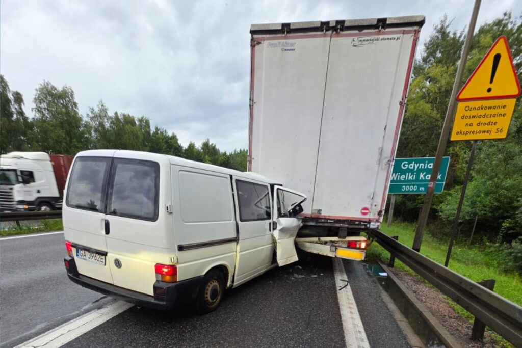 W piątek 8 sierpnia około godziny 7:00 rano na drodze ekspresowej S6 w rejonie zjazdu na na wysokości Gdańska Osowy kierujący Volkswagenem Transporterem najechał na tył 40-tonowego zestawu.